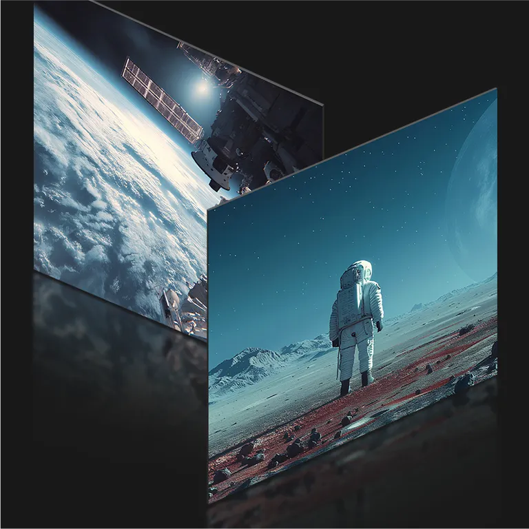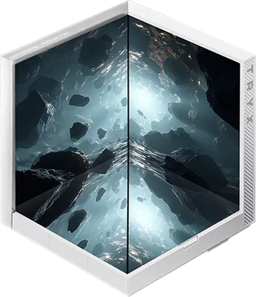 Extended Mode" merges STAGE's dual-screen IPS displays into one vibrant canvas. Showcasing city skylines or vivid landscapes